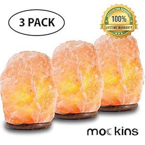 mockins 3 Pack Natural Hand Carved Himalayan Salt Lamp with Beautiful Wood Base 6″-8″ Tall- Includes Light Bulb and On and Off Switch | Great Room Decor and Night Light