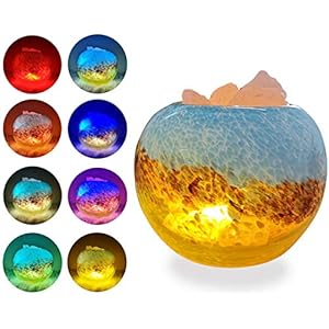 [Colored Drawing Glass Container]: Nice glass cover can be easy to clean, no rust no corroded, and long service time. Unique painting process, make salt lamp more unique, colorful and beautiful. Glass Container Salt Lamp angles to watch as the light and a different direction in two lighting modes (Multi Color Changing Mode & Warm Light Staying Mode), flashing colorful magic-like effects, add a sense of hierarchy, rather Baroque style.